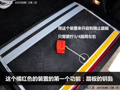 这里不得不说一下TX4这款车在辅助装置方面的独到之处,设计者在踏板的下方设计了一个锁止螺丝,这样可以保证平常该踏板不会松动,而使用时则用专门的一个橘红色的装饰开启,使用起来非常简单。