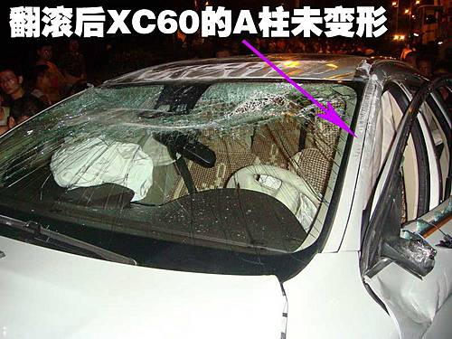 沃尔沃XC60碰撞翻车 车接近报废 人无恙(4)