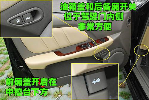 北京现代名驭在前排左侧车门内侧设置了油箱盖和后备厢的开启按钮,传统的设计都放在刹车系统部位,这样更加方便平常开启,前舱盖的开启按钮仍设置在中控台左侧下方。