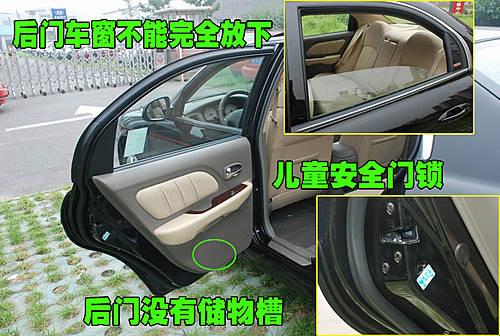 名驭后排车门并没有配备和前门一样的储物槽,不太方便,同时配备了儿童安全门锁。车窗在完全放下时,后门玻璃并不能完全放下,这样充分考虑到了后排乘客的安全。