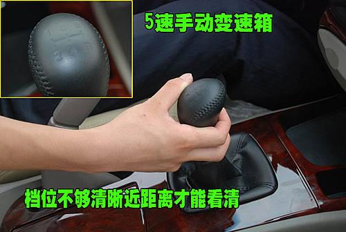 名驭采用了5速手动变速箱,挡把的真皮材料让握感比较厚实,档位的显示得不是特别清楚,近距离才能分辨清楚,对于新手来讲,容易挂错挡。