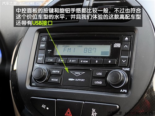 音乐对于年轻人来说是具有非凡意义的东西,如果没有自己喜爱的歌作为背景音乐,即便风景再好整个行车旅途都将是不完美的。而无敌版的熊猫肯定不会令人失望,它选用的音响系统带有支持MP3格式的CD播放器,在电脑上刻度的MP3光盘可以直接在这里播放。如果嫌刻盘太麻烦也不用担心,音响的USB接口可以直接连接MP3播放器或是U盘,如此一来,自己喜欢的歌曲就可以时刻相伴了。