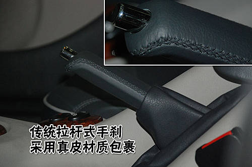 名爵MG 7L采用传统的拉杆式手刹,表面材料为塑料,行程较短,表面采用真皮材料缝制,手感比较舒服。