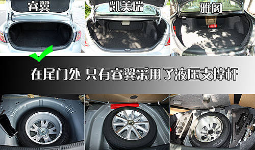 睿翼、雅阁和凯美瑞的后行李厢开启比较便捷,并且均可通过智能遥控钥匙均可实现操控。不过值得一提的是,睿翼采用了后备箱外部电磁式开启,而且还配备了液压支撑杆,开启时很轻松。