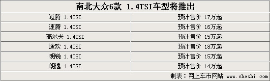 有了上一次大排量税调整的经验各大厂商对于国家即将出台的新政策更是越加关注了,而如果我们将目光继续关注于一汽大众,会发现南北大众旗下多达6款1.4升以下排量车型意图在今明两年上市。