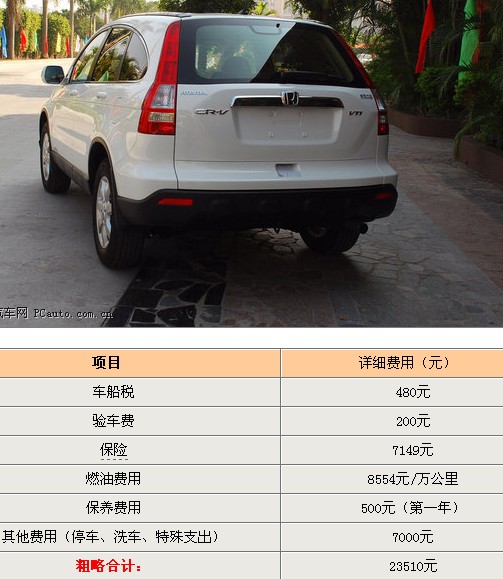 本田CR-V在每年行驶一万公里的最低标准下,所有的费用在23683元左右,这一花费也比普通的经济型轿车高出不少,在保险以及燃油方面的支出尤其突出。在车身价格在24万元的基础下,每年单单是在用车的成本上,已经达到了车身价格的10%,想拥有与众不同的驾驶感受以及较一般轿车更大空间的你,要好好衡量一下了。