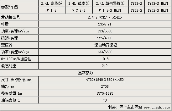 从目前我们得到的官方配置表中可以肯定,东风本田首批推出的将全部为2.4升直列引擎车款,全系搭配5挡手动自动一体变速器,并且全系车型都配备了方向盘后的换挡拨片,即便您购买2.4升入门车款也能够得到F1车手一般的换挡乐趣。