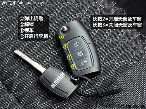 福克斯的钥匙也采用的是折叠式的钥匙机构,整体造型比较流线,通过其中控系统可以实现以下功能:解锁与闭锁车门,关闭天窗与车窗、开启车窗与天窗、开启行李箱、单独开启驾驶员侧车门。