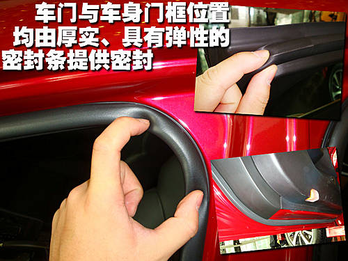 在车门以及车身相对应的门框部分包含两道密封条设计,用手触碰时会发现这两道密封条的质地富有弹性且非常厚实,配合思铂睿整车的高水准隔音设计,能够极好的起到隔音和密封的作用。