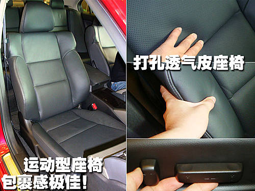 思铂睿整车座椅均采用真皮材料,体现出豪华车的豪华之处。驾驶席6向电动调节,调节杆做工精细。各按钮四周做工较细致,无松垮感觉。座垫和靠背的填充物比较软,使得思铂睿的全车座椅都非常舒适。