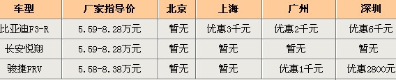 竞争车型:比亚迪F3-R、长安悦翔、骏捷FRV