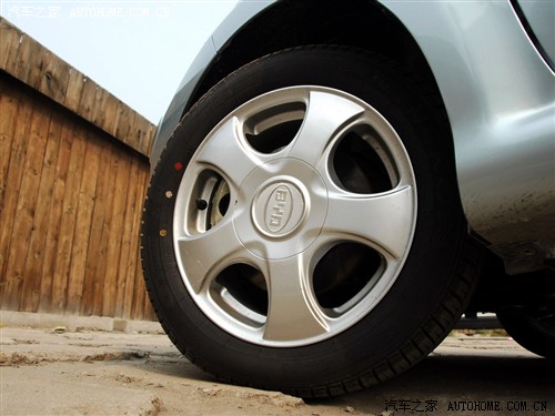 说实话微型车轮毂好看的还真不是很多,毕竟尺寸在那儿摆着呢,能做出来的花样有限,更何况还有成本这只利剑悬在头上,所以小型车的轮毂基本上没有太复杂了,首先要满足实用性的需求,有的车型甚至只有钢轮毂加装饰盖,有的铝合金轮毂造型你可能都不愿再看第二眼,所以在微型车中找一款好看的轮毂相当不容易,好在比亚迪F0的轮毂比较有特色。