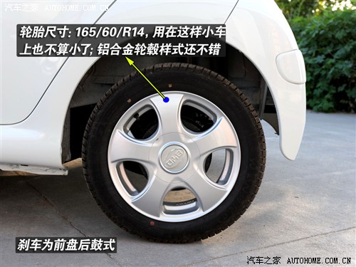 但F0并非全系都标配了这款铝合金轮毂,配置较低的实用型和舒适型则是一般的钢轮毂和塑料装饰罩,轮胎宽度方面,165似乎我们也说不出什么不好,但如果能升级到175的话,相信对行驶稳定性有更大的帮助。