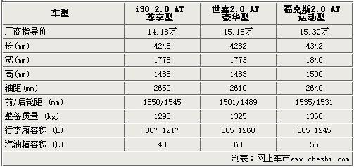 9月9日北京现代旗下的新款两厢轿车——i30正式上市销售,售价为9.98万——14.18万。这款充满欧洲设计元素的运动车型不仅一改传统韩系车型线条柔和的特点,而且丰富了北京现代的产品线。那么这款车的竞争力如何呢?下面我们将对售价在15万元左右的i30、世嘉和福克斯两厢等顶配车型进行详细对比,希望对您的购车有所帮助。