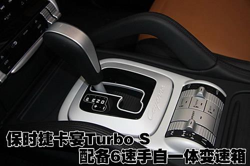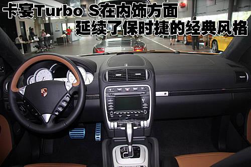 卡宴Turbo S在内饰方面延续了保时捷的经典风格,位于转向柱左侧的点火开关、三辐式方向盘及大面积的真皮饰面均出现保时捷卡宴Turbo S上。此外还可选装具备全字识别导航系统目的地功能的语音启动系统、通用音频接口(带MP3接口)、蓝牙移动电话连接以及可接收数字和模拟地面信号的电视模块。