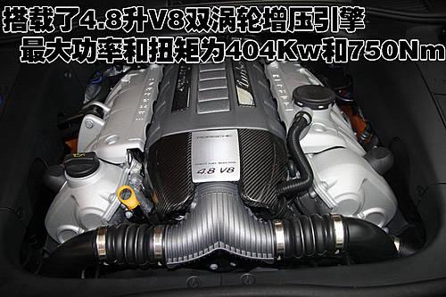 保时捷卡宴Turbo S是卡宴家族中动力最为强劲的车型,它由一部带有双涡轮增压强制进气的4.8升V8发动机驱动,功率可达404Kw。相对于普通Turbo车型来说,保时捷卡宴Turbo S在性能方面的提升主要得益于排气系统的改进和发动机控制方面的强化。除了性能得到提升以外,在发动机转速介于2,250 rpm至4,500 rpm范围内时,最大扭矩也提升了50Nm,达到了750Nm。