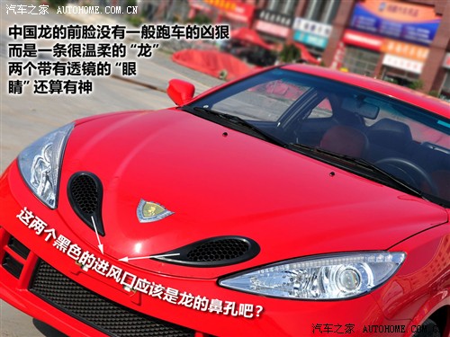 不过“中国龙”这个名字虽然响亮,但看到它,你却无论如何都很难把它和龙联系起来,如果说一款车的外形设计像龙的话,那么一定要线条修长,十分飘逸,这点中国龙做得还算合格;龙的前脸也得足够凶狠才行,但前脸上中国龙唯一像龙的地方,可能就是前脸有两个像龙一样的“鼻孔”。