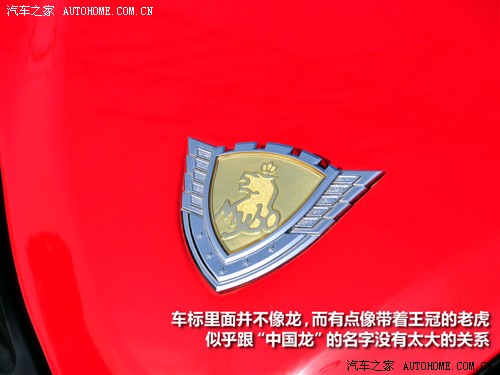 其次中国龙并没有使用吉利的车标,而是全新设计了一个盾形的徽标,那么徽标里面应该有一条龙才对呀?但我却怎么也没有看出哪里像腾飞的龙,有点像老虎或者狮子倒是真的。