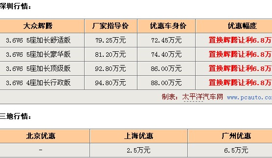 行情点评:作为大众最顶级的豪华轿车,大众辉腾近期的行情并没有让人有多大惊喜。作为一款80万元的豪华轿车,辉腾的售价相比同级别车型具有很大优势,但从这次优惠的方式来看,对于第一次购车的消费者会感到一点遗憾。