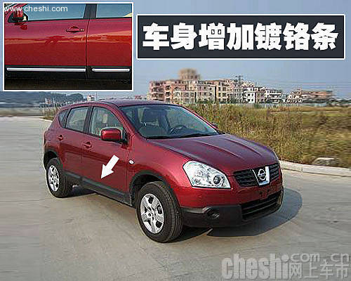 据该人士介绍:新款逍客不仅采用了国产的CVT变速箱,而且在车辆外观方面还增加了镀铬装饰条和前后装饰配件。下面就根据网上车市独家得到的新车谍照,来抢先了解一下新款逍客。