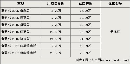 根据北京别克经销店销售人员介绍,自别克新君威1.6T上市后,目前别克新君威全系共有7款车在售,售价区间为17.99万元-25.59万元。销售人员还介绍,店内已经可以介绍新君威1.6T的预订,订金为1千元,月底首批现车到店。
