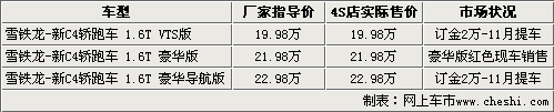记者从北京地区进口雪铁龙经销商处了解到,目前刚上市的C4轿跑车已经有展车到店,并只有售价21.98万元的一款车型可以现车销售,而且只有红色一款车型,提车不需要加钱。其余两款车型均需要提前预定,订金为2万元,车主最早可以在11月份提到现车。