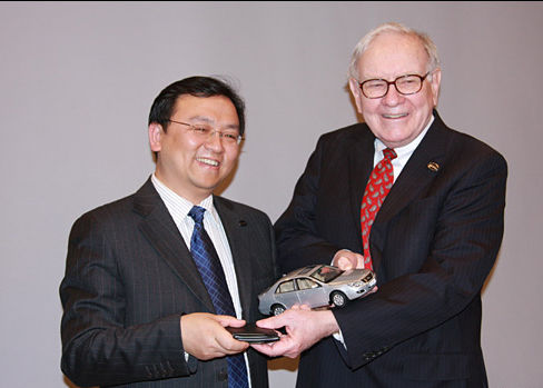 根据上海咨询公司——胡润研究院编制的年度中国百富榜,比亚迪公司(BYD)的创始人及董事长王传福的名次从第103位跃升至第一位,资产净值51亿美元。一年前,由巴菲特的旗舰公司伯克希尔哈撒韦(Berkshire Hathaway)所控制的中美能源公司(MidAmerican Energy),以2.3亿美元购得比亚迪10%股份。自那以来,比亚迪的股价已上涨超过7倍,使巴菲特这位受到密切关注的美国投资者所持股份的价值增至17亿美元。比亚迪的主营业务是制造手机电池和轿车,其估值增幅中,有相当大部分是基于该公司正在研发的电动汽车的前景。