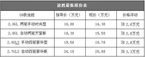 09款途胜最高优惠3.3万元