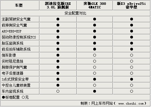 三者在主动及被动安全性上都做得非常出色,相比在配置方面上,美国人较为大方。标配了胸部保护侧气囊、实时阻尼悬挂、倒车影像、电子后差速器等配置,这在实际驾驶中保证了成员安全及车辆行驶安全。值得一提的是,奔驰装备了车内监视系统,在车辆处于静止状态下,如有人进入车内则有警报提示驾驶员。这一点可以看出,奔驰在人文关怀上做得相当好,提供了多一方面的安全保障。
