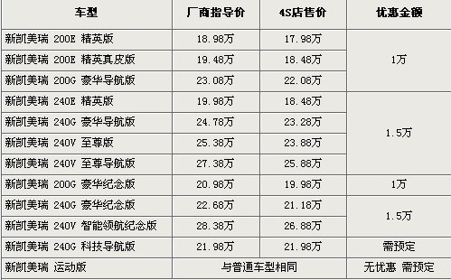 据4S店销售人员介绍,凯美瑞在9月份推出了限量版两款车型,其中包括了运动版和纪念版,运动版全系可以免费升级运动套件。如果够买这款车的话需要提前预订,价格和普通车型相同。车价方面优惠幅度在1万元-1.5万元之间,入门级车型优惠后也跌破了18万元。