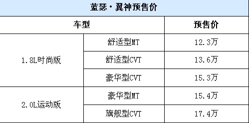 作为今年紧凑型车市另外一款重要的产品,东南汽车官方表示,从2009年10月15日起三菱LANCER EX蓝瑟·翼神正式以12.3-17.4万元的预售价接受消费者预定。其中1.8L时尚版共三款,分别为舒适型MT 12.3万元,舒适型CVT 13.6万元,豪华型CVT 15.3万元;2.0L运动版共两款,分别为豪华型MT 15.4万元,旗舰型CVT 17.4万元。新车将于11月份中旬正式上市。