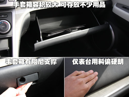 副驾驶位置的手套箱带有阻尼设计,打开时不会因重力自由下落,同时大容积手套箱能够满足车主日常放置常用物品的需求。仪表台表面用料偏硬朗,但接缝十分匀称。