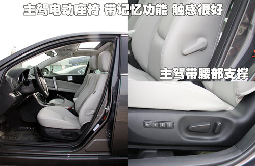 马自达睿翼2.0L整车均为米色真皮座椅,个人认为如果是黑色真皮要更搭配一些,主驾座椅8项电动调节,并提供了3组座椅记忆功能,日常使用更加方便,而腰靠调节则为手动,各按钮四周做工细致、缝隙均匀。