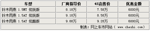 据长安铃木4S店销售人员介绍,长安铃木雨燕在北京市场销售情况良好,车型主要是雨燕1.5L超炫版的炫锐款手动和自动两款;而颜色方面,太空银、墨蓝色、梦幻红、牛仔蓝、星韵黄、橘红色等均有现车。店内还有少量限量版销售,双色车身更显年轻时尚。长安铃木雨燕还提供试驾服务,如果您想亲自感受该款小车的驾驭感,只要带好本人的驾照,到店登记就可以了。