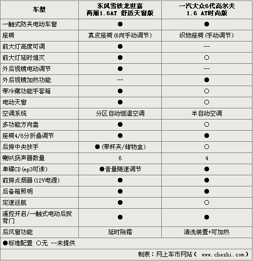 总体而言,世嘉两厢1.6自动天窗版和1.6高尔夫6在虽然在价格上仅相差了3000元,但配置上的差异还是比较明显的。而在性能和空间方面,两款均有各自独有的特点。在具体的选购中车型较多,配置差异也比较明显,消费者可根据偏好以及实用性适当选择相应的车型和价位。