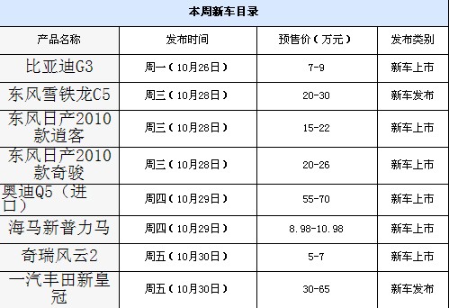 本周将会有8款新车与消费者见面,这将是11月广州车展之前新车最密集的一周,而且新车中还不乏进口Q5、新皇冠、雪铁龙C5等重磅车型,下面为了方便消费者了解编辑就为朋友们简单介绍一下这些车型。
