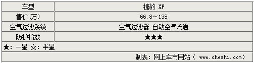 在配备部分,XF也可说是相当齐备,包括视觉盲点监测、前后停车辅助系统、倒车影象、可调式定速系统、自动限速器、胎压监测系统,以及蓝牙通讯系统等,都在配备清单之中;而为了要带给车内成员更好的听觉享受,XF提供三种等级的音响系统,除全数具备触控屏幕功能外,顶级款更搭载由Bowers & Wilkins所提供的顶级音响系统,六片装CD设定,可输出440瓦的最大功率,并具有环绕效果,并能读取包括iPod以及MP3播放器等音源。