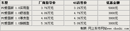 比亚迪F0目前在4S店的销售价格比上周有所提高,其中实用型可以优惠5000元,而其他三款车型都可以优惠3000元。目前比亚迪F0实用型和舒适型现车比较齐全,尊贵型和旗舰型有部分颜色需要预订。为了庆祝比亚迪F0上市一周年,首次尝试了拍卖销售活动,消费者可以在现场通过竞拍,以最优惠的价格购买比亚迪F0。据了解,比亚迪F0拍卖活动有很多成交价格都低于厂商指导价7000-8000元,比目前市场最低价格也低2000-5000元左右。