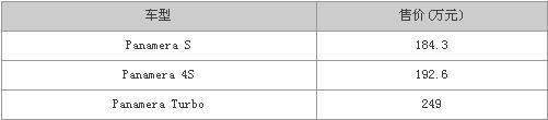 2009年11月9日,保时捷以“至善者不息”为主题,在厦门举行了全新Panamera的发布会,并且宣布新车将于11月底于全国范围内各家保时捷中心到店。共发布了三款车型,分别为Panamera S、Panamera 4S和Panamera Turbo,详细车型售价请见下表: