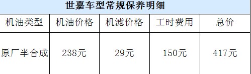 可能看到这里您会疑问,为什么世嘉的工时费用这么高?因为我们调查是按照正常的保养里程工时费计算的,因此手工费比较高,而按照快修(即只换机油机滤)的工时费计算的话更换机油机滤为320元左右。