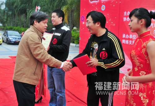 中共福建省委外宣办副主任、网络办常务副主任卢承圣、福建汽车工业协会会长凌玉章、中国新闻社福建分社社长徐德金、中国华艺广播公司总经理柳林岚、中国移动通信福州分公司总经理助理陈昆嵘、福建工程学院文化传播系党总支副书记林国平、福州健康道健身休闲有限公司李坚、晶特尔齿科会所陈新炬等嘉宾出席颁奖典礼,并为获奖的参赛者颁奖。