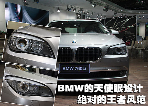 新一代BMW7系轿车的前进气格栅相比老款车型处理的更加大,在原有银色镀铬饰条之外还增加了横向的黑色条纹。其正面整体造型与07年上海车展中全球首发的BMW CS概念车颇为相像。