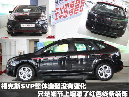 就外观而言,福克斯SVP版车型在整体轮廓上没有改变,只是在细节处增添了几分运动色彩。车身颜色采用磨砂黑,并配以红色饰条,使整体看起来更加精神,好似一副赛车模样。红色饰条被安排在进气格栅处,当然尾部也与之相互辉映。车身侧面棱线也被包裹,沿前轮眉处一直延伸至尾部。除此之外,尾灯及第三刹车灯出也被红色线条包围,这车好似被焰火围住,充满了激情。轮毂这次发生了较大变化,独特的造型更加运动、个性,与外观配合一起极为默契。