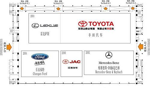 二层5号馆内丰田、雷克萨斯占据一半的面积,而另一半则被奔驰、江淮、福特所占据,其中丰田新普锐斯、雷克萨斯GX460将发布,而奔驰则有新E200和E260发布,福特的福克斯SVP将正式上市。