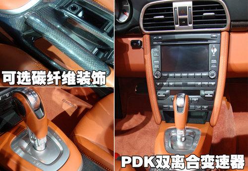 2010款保时捷911 Turbo敞篷版三辐方向盘两侧则依照人体工学设计,分别加入音响通讯的控制键与滚轮,外侧则是铝合金的PDK换档滑动开关,这项全新的方向盘换档设计,在人体工学的表现相当优异,利用食指或中指就能完成升档与降档的档位变换动作。
