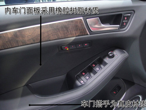 奥迪Q5车门内侧拉手采用金属磨砂处理,提升了视觉效果,并且与车门内饰板接缝均匀。内门拉手开启力度适中,回位迅速。