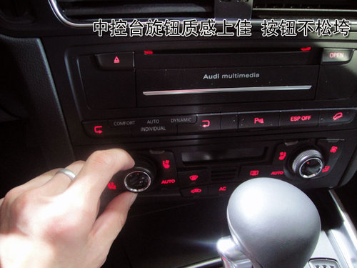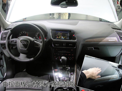 奥迪Q5仪表台的整体感觉与奥迪家族的其它车型高度统一,略向驾驶员一侧偏转的仪表台照顾到了驾驶员在驾车当中的操作便捷性。与奥迪家族跑车相同的仪表盘布局增添了奥迪Q5的运动气息。中控台大量使用橡胶树脂材质,手感较硬。