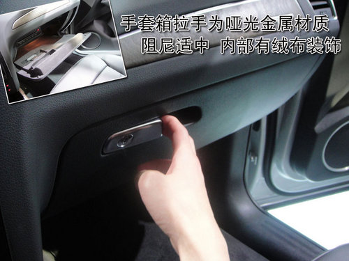 中控台为一体式设计,将液晶显示屏、音响与空调紧凑的设计,突出了整车时尚元素,其中各个接缝及表面的做工较为精致。使用时发现各个控制按键及旋转调节扭力均匀,反馈效果不错。
