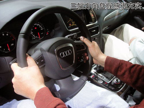 与进口Q5不同,国产Q5采用的是三幅边式方向盘设计,并且运用真皮包裹,正中央道奇四环徽标采用镀铬处理,提供了鲜明的触感及视觉效果。