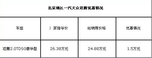 迈腾一直是科技和时尚的代名词,不但适于商用用车,而且家庭用车也是一个较好的选择,目前,在北京市场迈腾2.0TDSG豪华版1.5万元并赠送全车强生膜,购买该款车可以享受“好车配好膜”的欣喜服务。